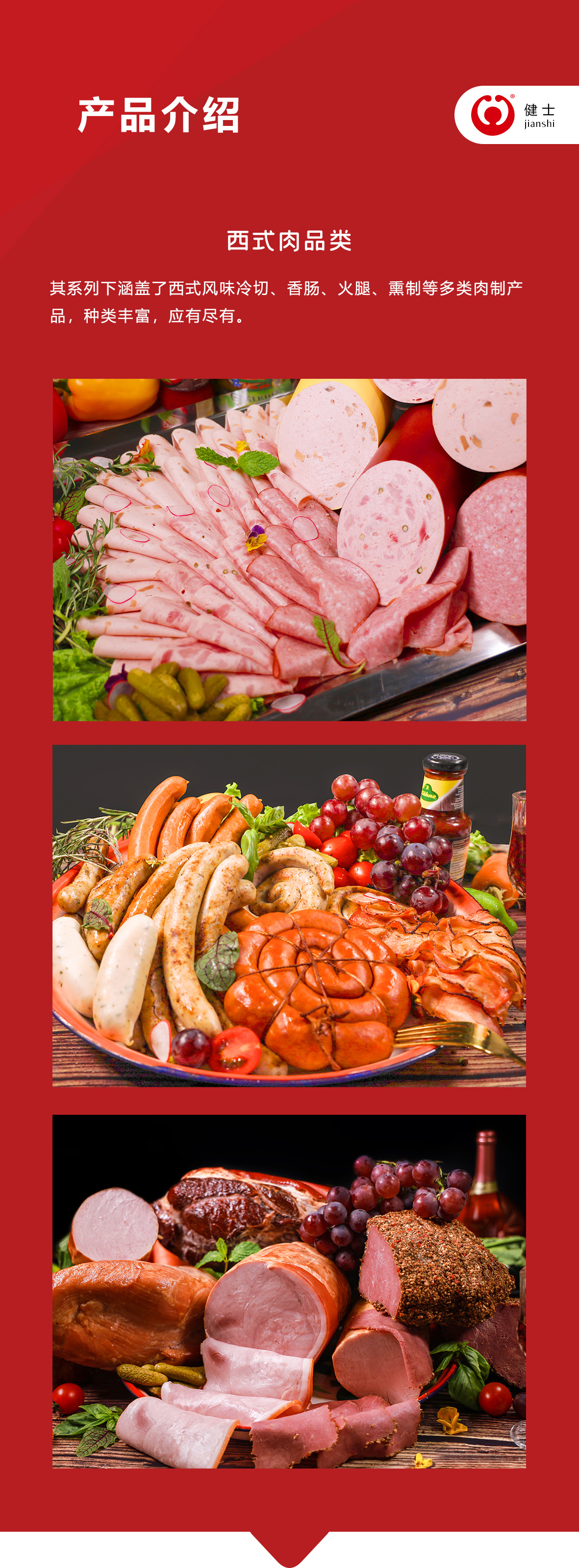 公司注冊(cè)商標(biāo)為“健士”,主營(yíng)業(yè)務(wù)涉及西式肉制品、中式預(yù)制半成品,以及與國(guó)家級(jí)鮭鱒魚(yú)養(yǎng)殖基地深度合作開(kāi)發(fā)的高端水產(chǎn)品,公司旗下還設(shè)立了清真食品分公司,將業(yè)務(wù)延伸至清真肉制品加工領(lǐng)域。公司秉承“誠(chéng)信為本,客戶至上,團(tuán)結(jié)奮進(jìn),追求卓越”的經(jīng)營(yíng)理念。產(chǎn)品銷往全國(guó)各大城市星級(jí)酒店、航空配餐企業(yè)及大型連鎖餐飲,部分產(chǎn)品遠(yuǎn)銷至香港等地區(qū)。