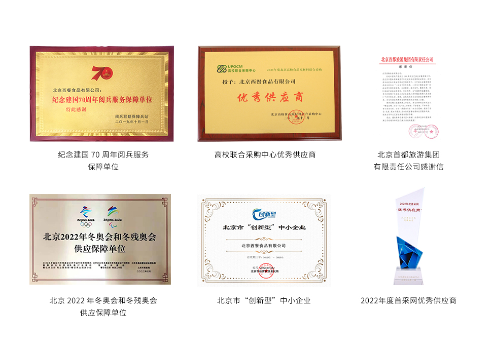 公司先后通過(guò)了HACCP、ISO22000、FSSC22000食品安全管理體系認(rèn)證。是北京奧運(yùn)會(huì)和北京冬奧會(huì)、冬殘奧會(huì)運(yùn)動(dòng)員餐指定的西式肉制品供應(yīng)保障企業(yè),也是第21屆世界大學(xué)生運(yùn)動(dòng)會(huì)、廈門(mén)金磚會(huì)議、上合組織峰會(huì)、中非合作論壇、“一帶一路”、建國(guó)70周年、抗戰(zhàn)勝利80周年、全國(guó)兩會(huì)等多項(xiàng)重大活動(dòng)的肉制品供應(yīng)單位。