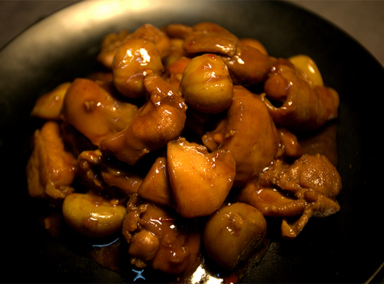 產(chǎn)品配料:帶皮雞腿肉、去皮栗子、香辛料等