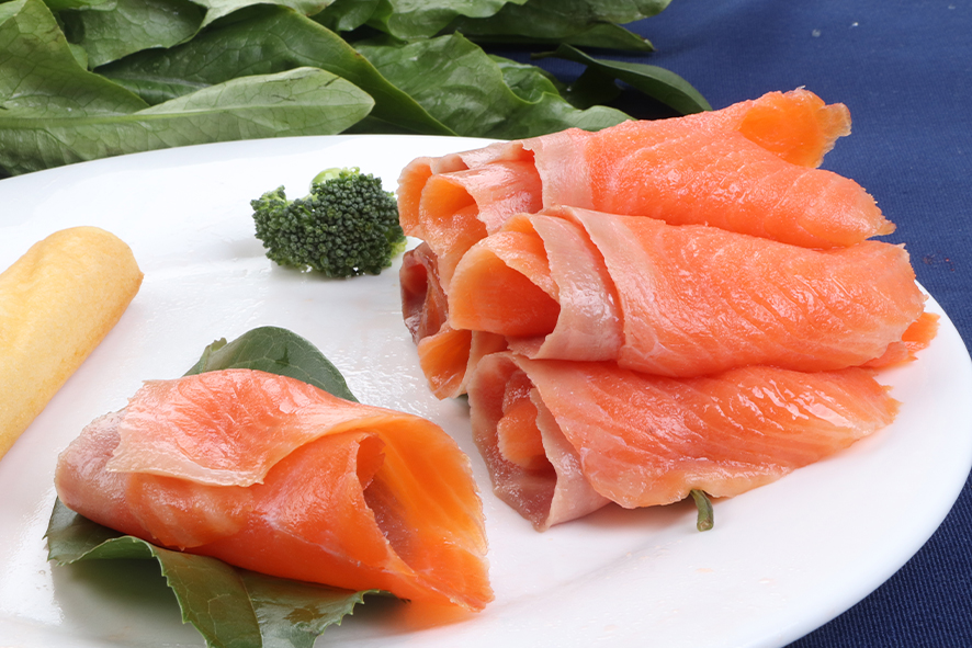 產(chǎn)品名稱:冷熏三文魚切片