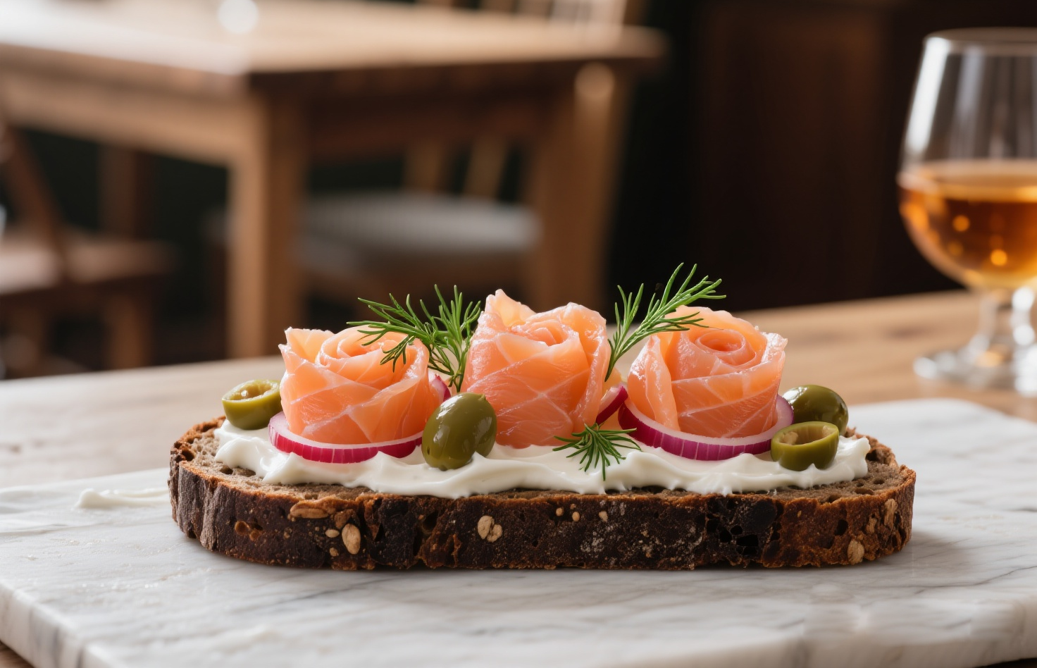 特點(diǎn):黑麥面包的質(zhì)樸谷物香與三文魚的細(xì)膩油潤(rùn)相得益彰。