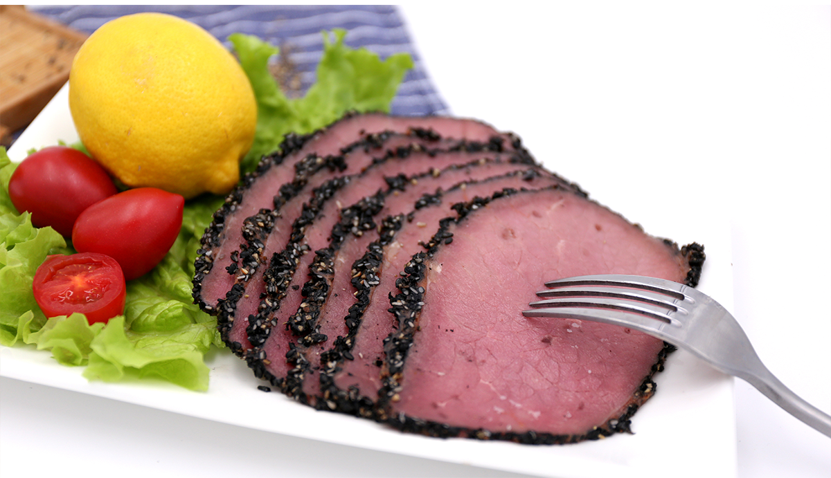 主要配料:牛肉、水、黑芝麻、馬鈴薯淀粉、黑胡椒、食用鹽、大豆蛋白、食品添加劑、白砂糖、復(fù)合調(diào)味料、食用葡萄糖